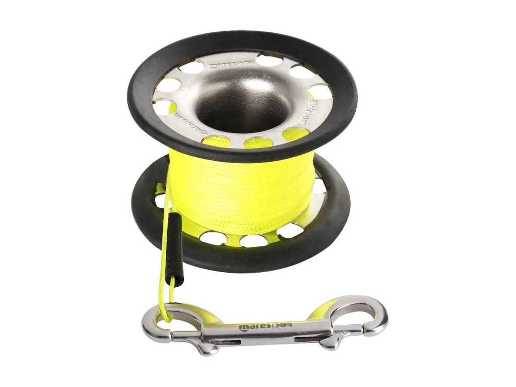 Součástí cívky je kvalitní dvojitá karabina (bold snap) z nerezové oceli 316, která zajišťuje bezpečné a spolehlivé uchycení k výstroji. Použitá šňůra Edelrid™ je vyrobena z prvotřídního materiálu a vyniká dobrou viditelností i při snížené viditelnosti pod vodou.
