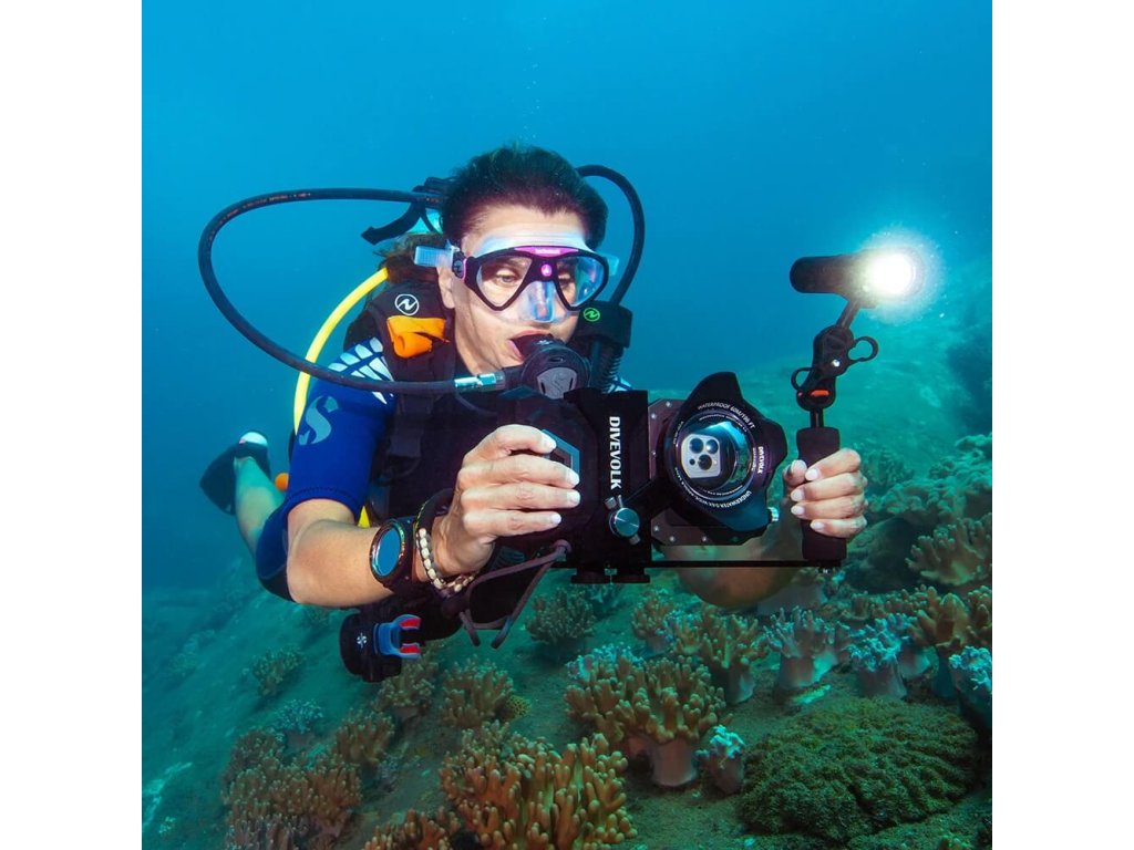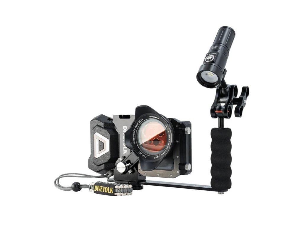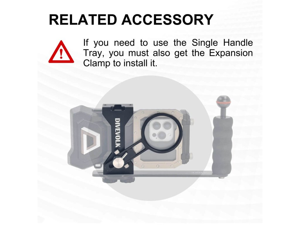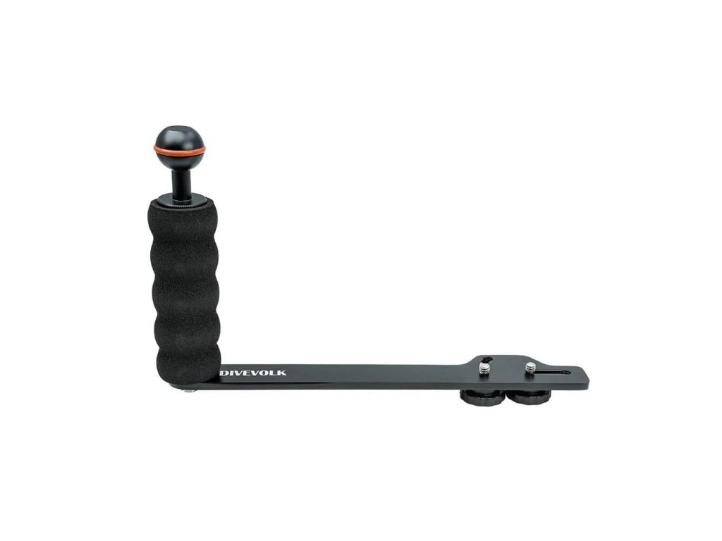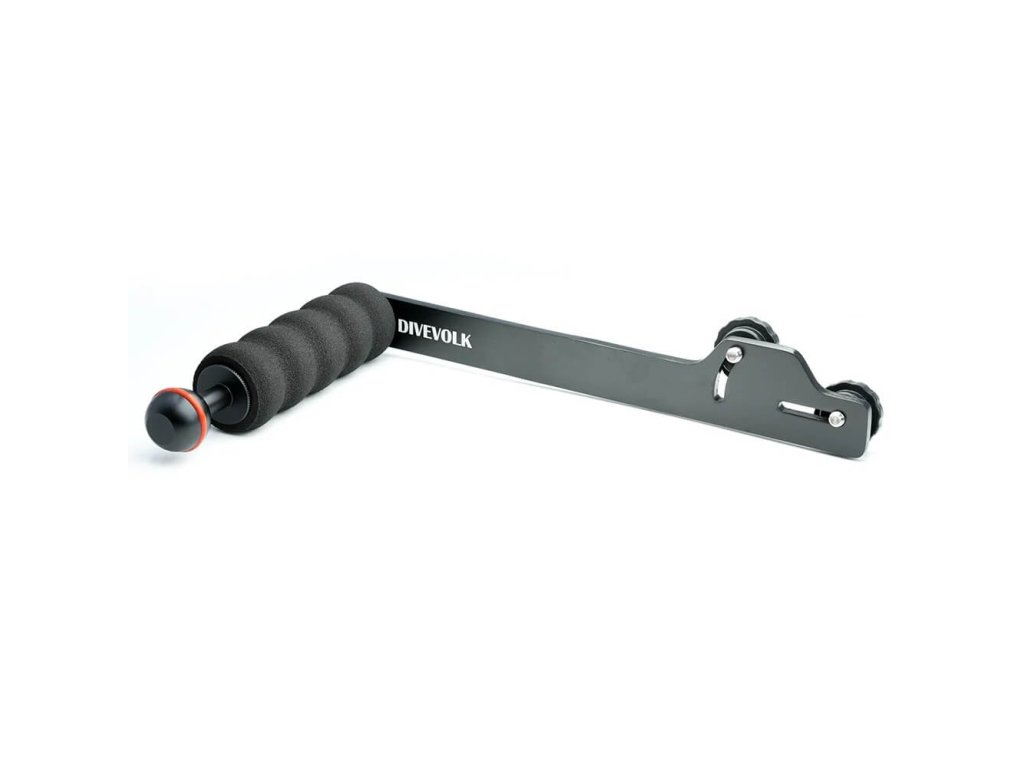 Rozšiřte své možnosti podvodního focení s Divevolk Single Handle Tray – praktickým držákem s ergonomickou rukojetí, který umožňuje snadné připojení světla nebo dalšího příslušenství k vašemu podvodnímu pouzdru.