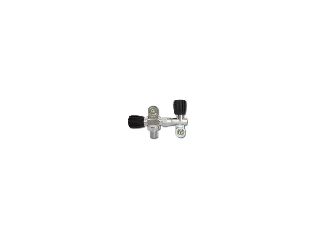 Dvouventil na potápěčskou tlakovou lahev s provozním tlakem 300 bar.