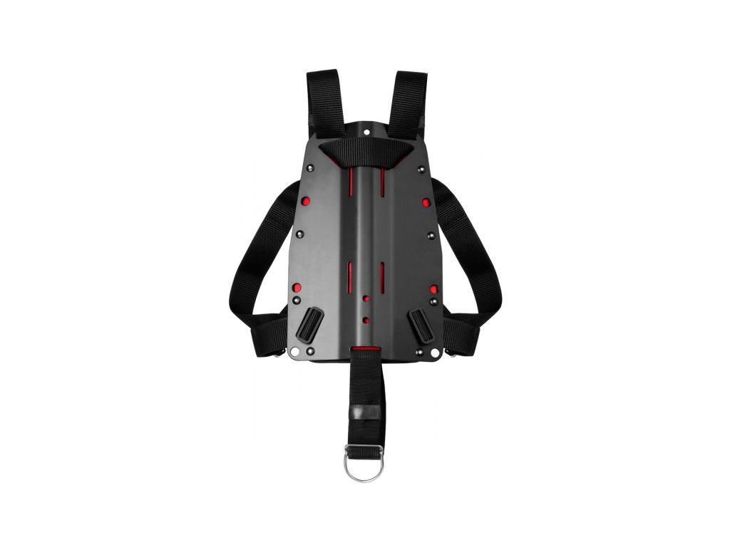 Pro postroj FLY side jsme použili naši kvalitní zádovou desku. Důvodem je zabezpečení ideálního rozložení zátěže a díky tomu nikdy neponesete moc, nebo příliš málo. Postroj je plně nastavitelný s výběrem zádových desek. Hliníková na cestování nebo z nerezové oceli pro lokální ponory (3 mm nebo 6 mm, podle požadované hmotnosti). Zátěžový systém může být taktéž upraven – nabízíme kapsy na závaží umístěné na zádové desce ve třech velikostech: 1, 2 nebo 3 kg závaží, ale také možnost použít integrovanou zátěž, která je šrouby připevněná k zádové desce – 2 x 5 kg.