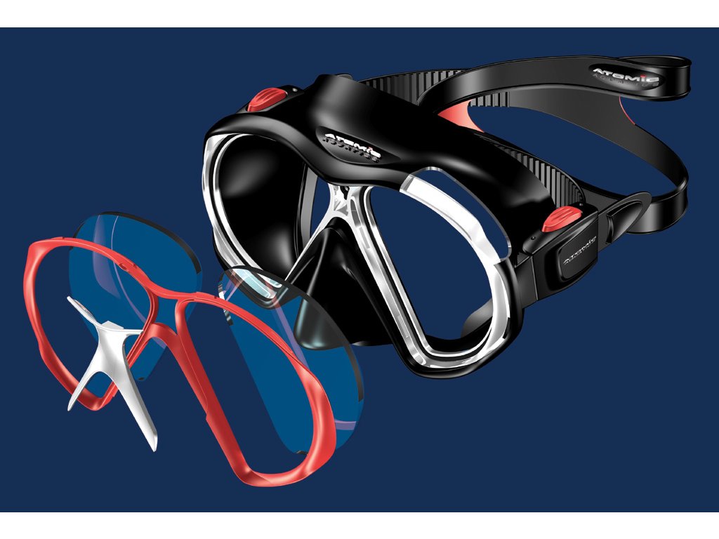 Příslušenství pro model SubFrame. Kvalitní dioptrická skla jsou dostupná od hodnoty -1.0 do -8.0 s přírůstky 0.5 dioptrie. Masku s dioptrickými skly je třeba kompletovat u výrobce, nebo v autorizovaném servisu.