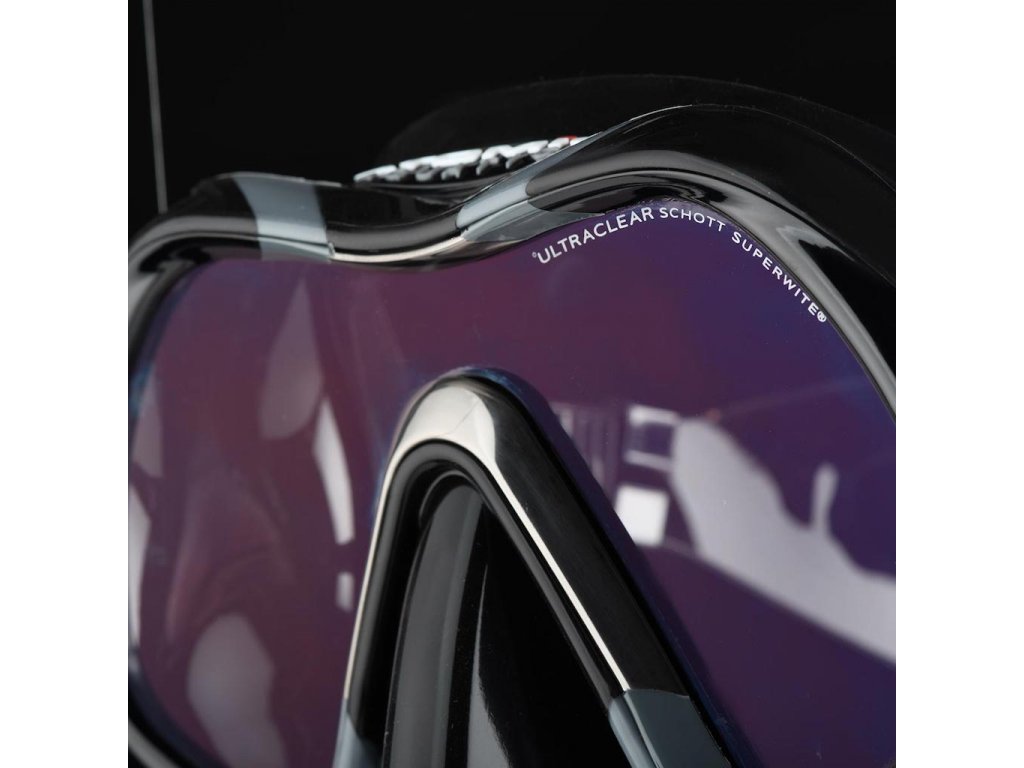 Špičková potápěčská maska od jednoho z nejlepších výrobců potápěčského vybavení, firmy Atomic Aquatics, sedí skoro na každý obličej a vyznačuje se obzvláště velkým zorným úhlem, pohodlným silikonem a ultra čirými skly.