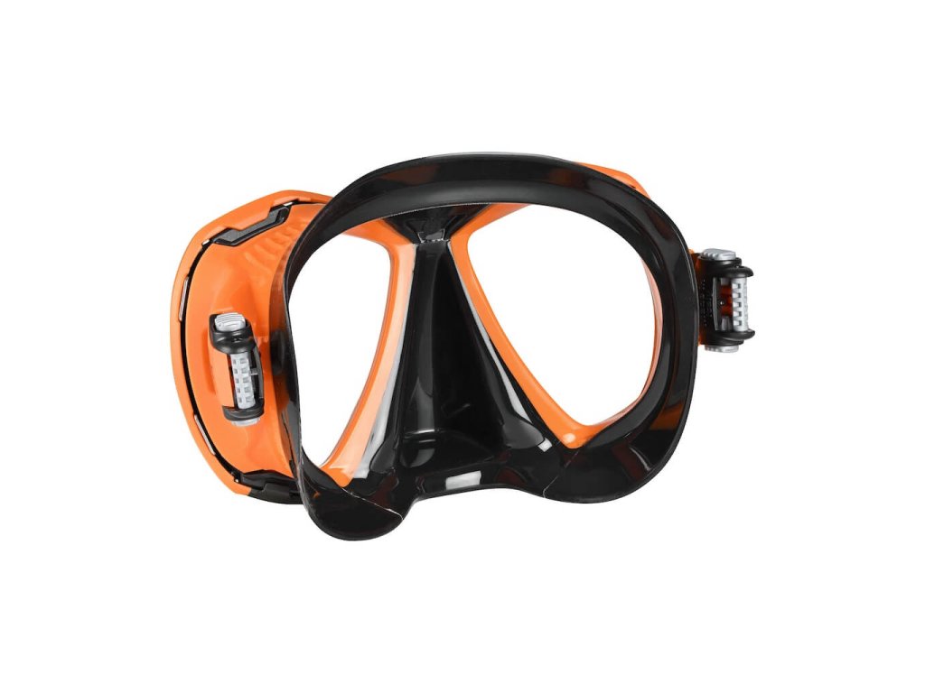 Elegantní, plochý profil masky s integrovaným nerezovým rámečkem zaručuje vysokou odolnost a zároveň poskytuje bezkonkurenční panoramatické zorné pole. Maska tak nabízí skvělý přehled pod vodou bez omezení.