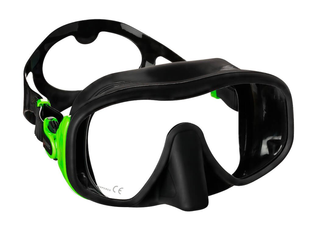 Jako bezrámečkové (frameless) označujeme masky, které mají malý vnitřní objem a výrazně tenčí rámeček ve kterém je uchyceno tvrzené sklo. Tyto masky jsou nižší a kompaktnější. Bezrámečkové provedení masky zajišťuje výrazně větší výhled než klasická konstrukce masky, protože sklo je blíže u vašich očí.