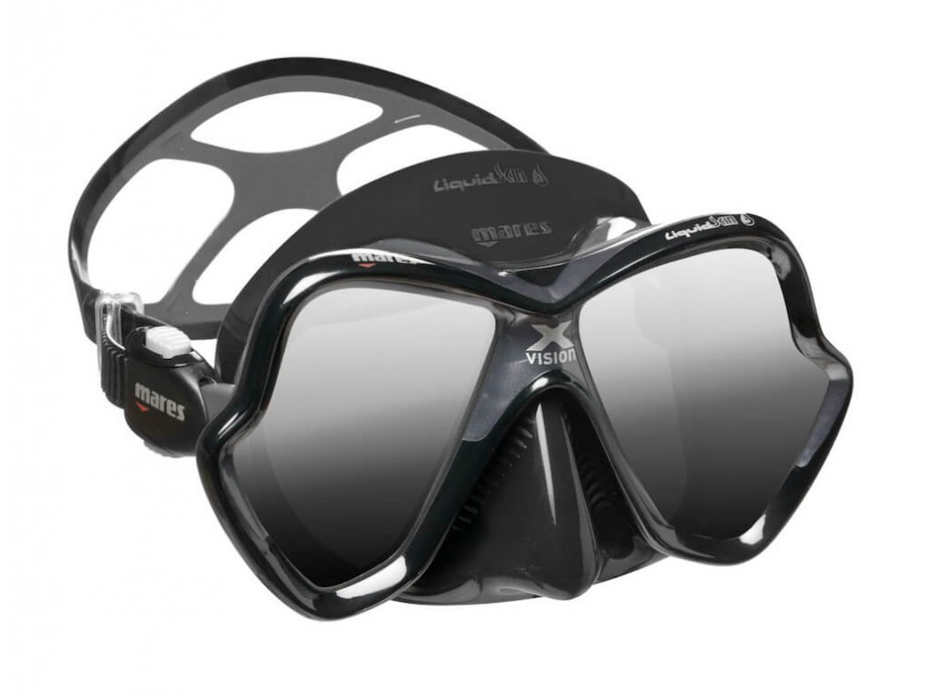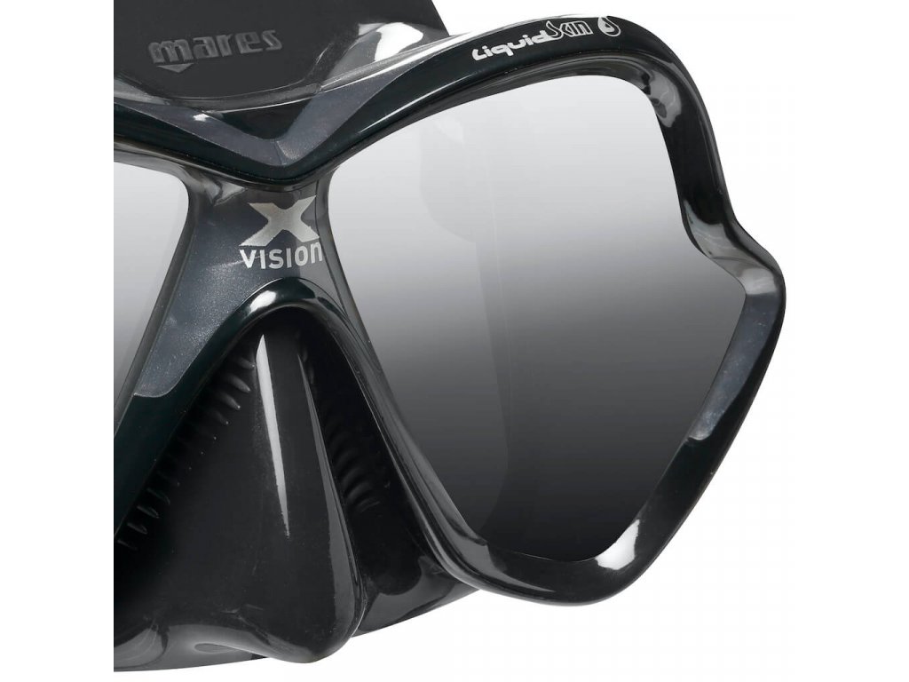 Potápěčská maska Mares X-Vision Liquidskin je dvojzorníková maska, která se vyznačuje použitím špičkového silikonu Liquidskin, který je o 45% měkčí a 270% pružnější než klasické silikony použité u ostatních masek. Tato maska je vybavena stříbrně tónovanými skly, které snižují odlesky v mělkých vodách a na písčitém dně.