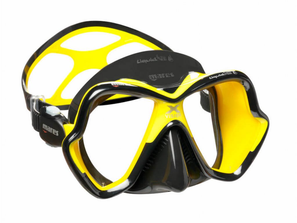 Potápěčská maska Mares X-Vision Liquidskin je dvojzorníková maska, která se vyznačuje použitím špičkového silikonu Liquidskin, který je o 45% měkčí a 270% pružnější než klasické silikony použité u ostatních masek.