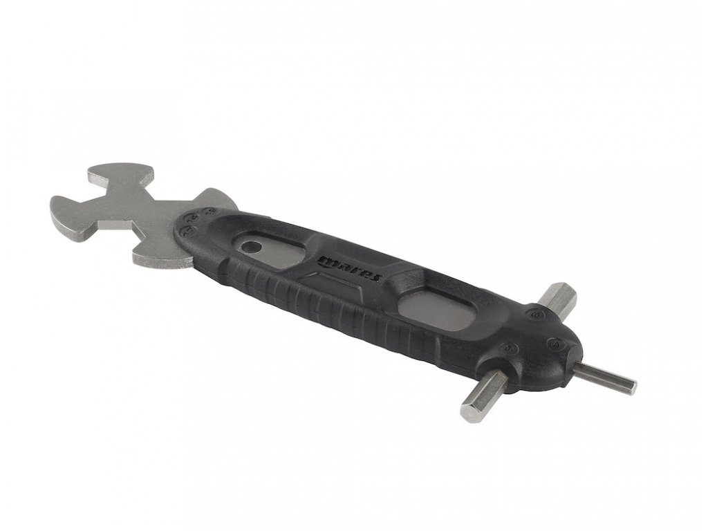 Praktický nástroj pro každého potápěče. Nářadí mares Multi Pro je zhotoveno z kvalitní nerezové oceli a obsahuje důležité nástroje, jako například klíče a imbusy. Je velmi praktické a skladné.
