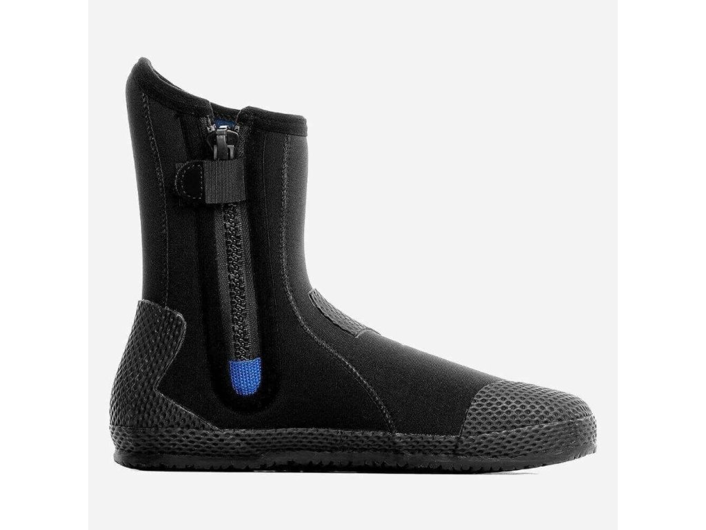 Robustní zip YKK #10 z nekorozivního materiálu zaručuje snadné oblékání i po stovkách ponorů. Elastická manžeta na horním okraji odolává opotřebení a drží botu pevně na místě.