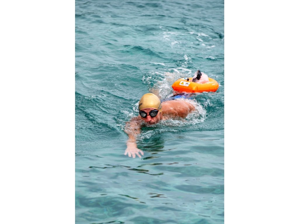 Výrazná nafukovací vlečná bójka Zoggs s popruhem, která při plavání viditelně plave za vámi.