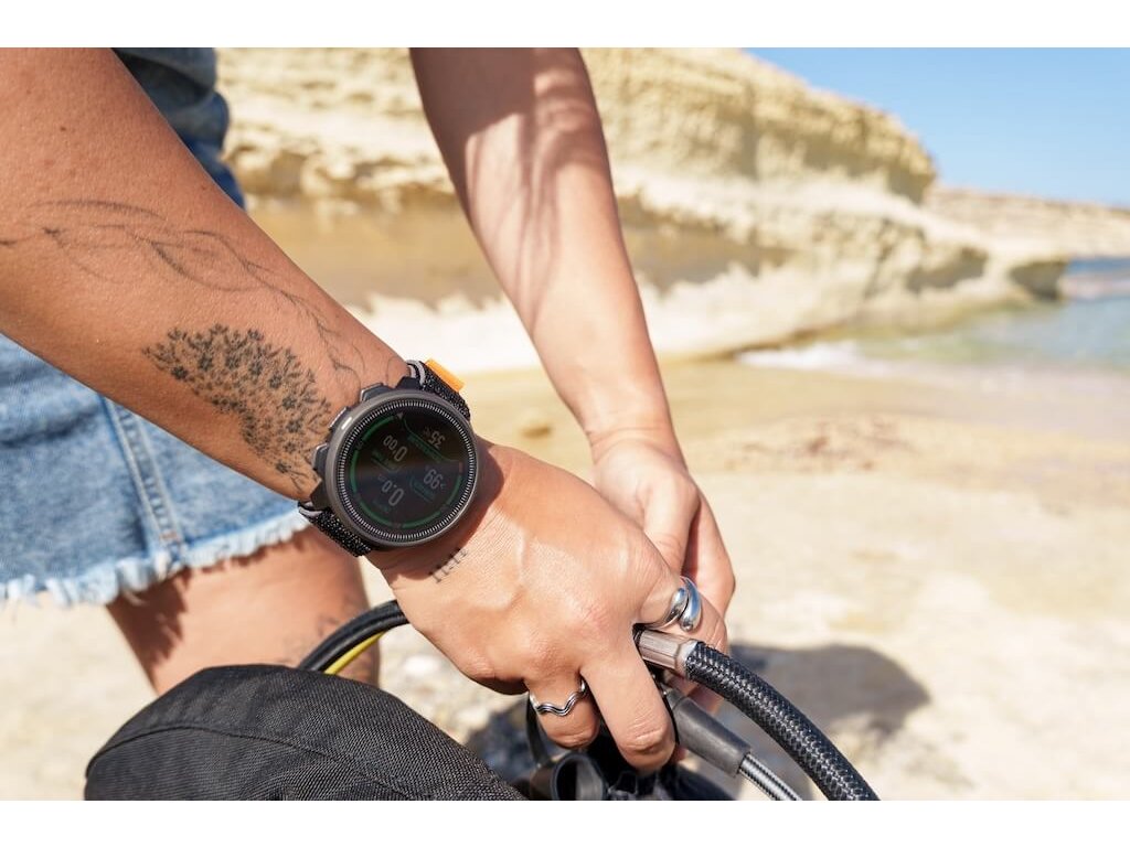 Velký a jasný AMOLED displej zaručuje výbornou čitelnost i v náročných podmínkách. Barevně odlišené informace a přehledné rozložení údajů vám umožní soustředit se na samotný zážitek z potápění, ne na techniku.