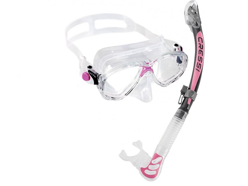 Šnorchlovací set Cressi Marea a Alpha Ultra Dry růžový