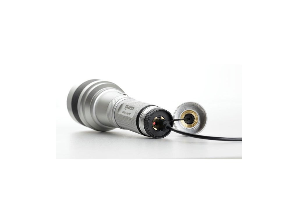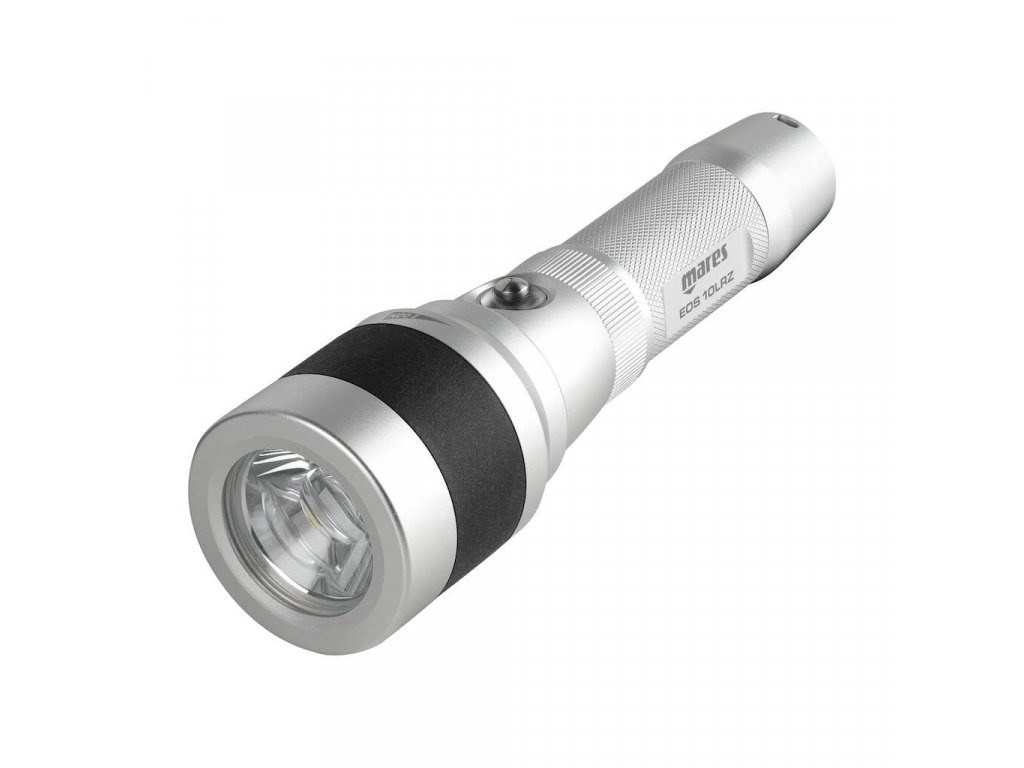 Potápěčská nabíjecí svítilna Mares EOS 10 LRZ s nastavitelným úhlem světelného kužele 12° - 75°, přepínáním výkonu a indikací stavu nabití. Maximální výkon svítilny je 1100 Lumenů.