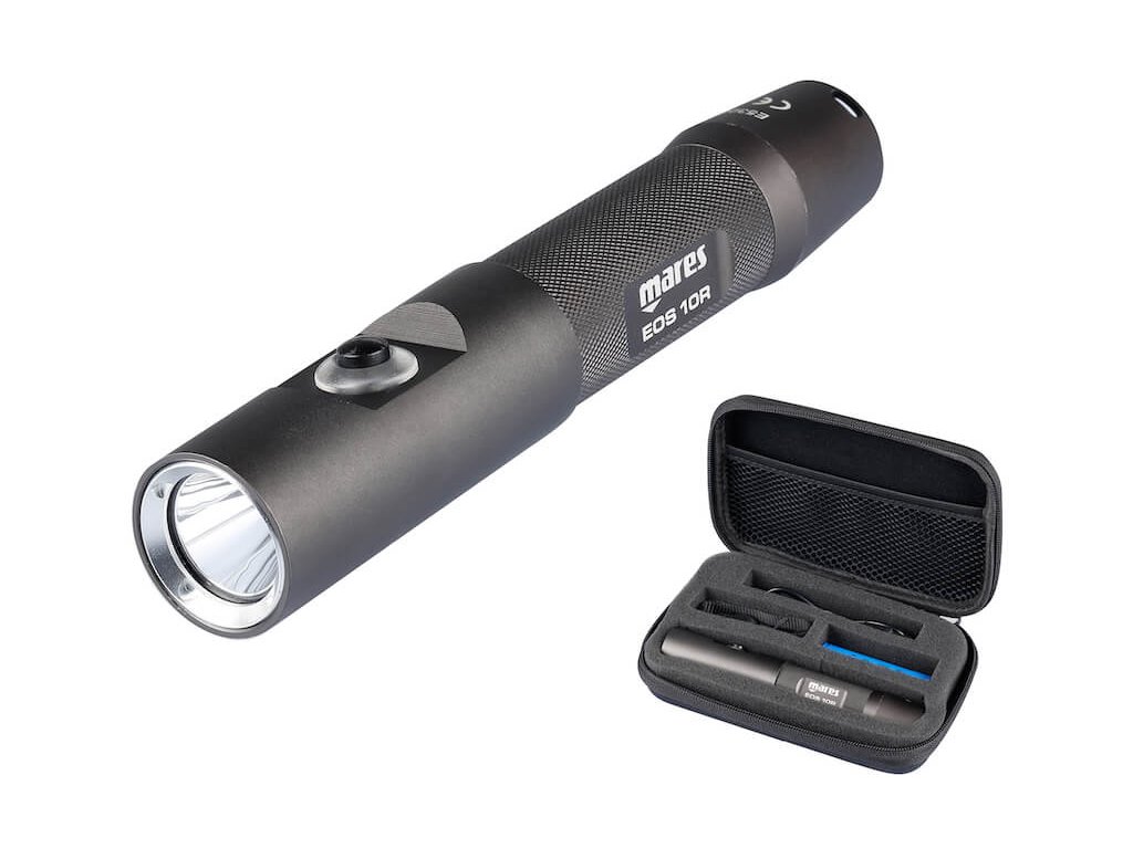 Potápěčské světlo Mares EOS 10 R je malá kompaktní LED baterka, která díky své malé velikosti je vhodná pro použití jako výkonné záložní světlo nebo hlavní lampa pro méně náročné cestující potápěče. Svítilna je vybavena přepínáním režimů svícení na plný (1000 lumenů) a nízký (500 lumenů) výkon a režimem blikacího strobo SOS.